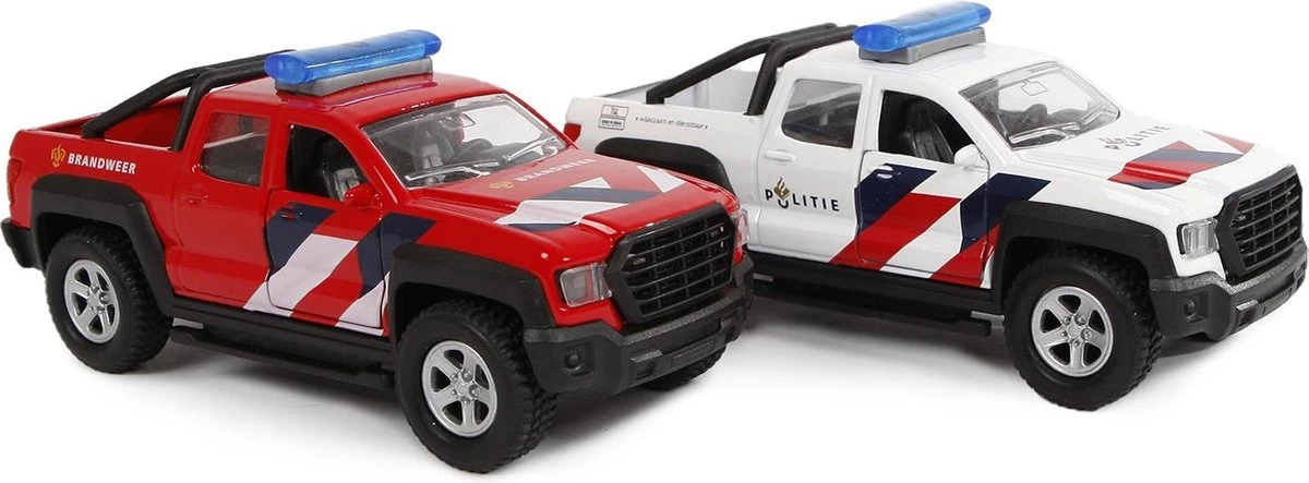 KidsGlobe Politie+Brandweerauto 4×4 met geluid en zwaailicht
