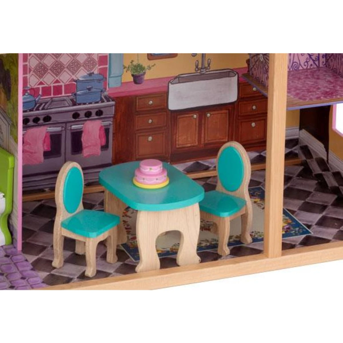 (Barbie)poppenhuis met 13 kleurrijke meubeltjes (waaronder 2 prachtige hemelbedden), lift met gloednieuw glijsysteem en wenteltrap.