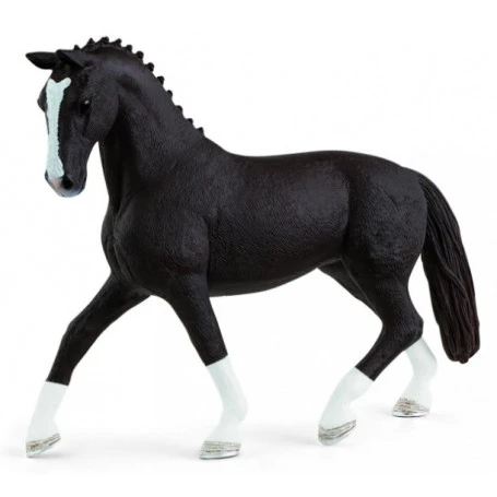 De manen van de zwarte Hannoveraanse merrie van de Schleich® Horse Club zijn gevlochten als kleine, uitstekende toernooivlechtjes. Door haar levendige houding laat ze zien dat ze volop energie heeft en nauwelijks kan wachten om samen met haar berijder topprestaties te leveren. Hannoveranen tellen tot de oudste warmbloedrassen en gelden als uitstekende toernooipaarden. Ze zijn gemakkelijk te trainen, moedig, wilskrachtig en hebben een vriendelijk, zacht karakter.